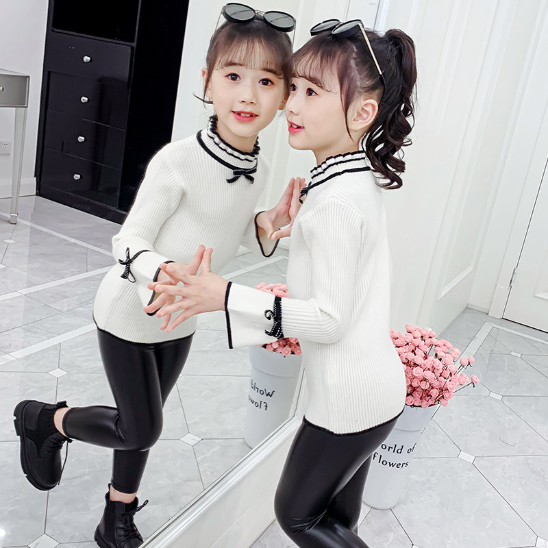 Girls sweater 2022 new autumn and winter clothes Western style all-match black inner tops little girls half turtleneck bottoming shirts