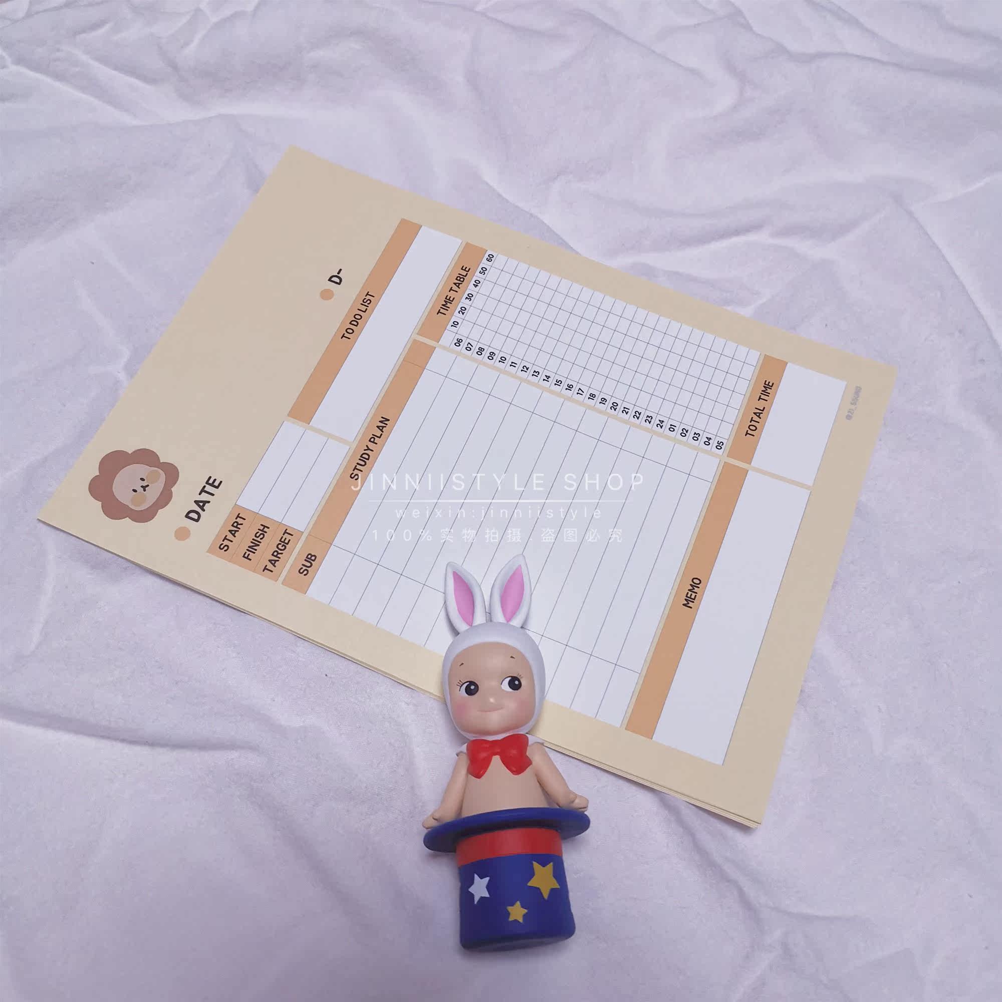 South Korea Straight Postal Ssung Cute Animal Rabbit Bear Dog Tiger Rat Lion A5 Time Axis Learning Plan Paper 50 sheets