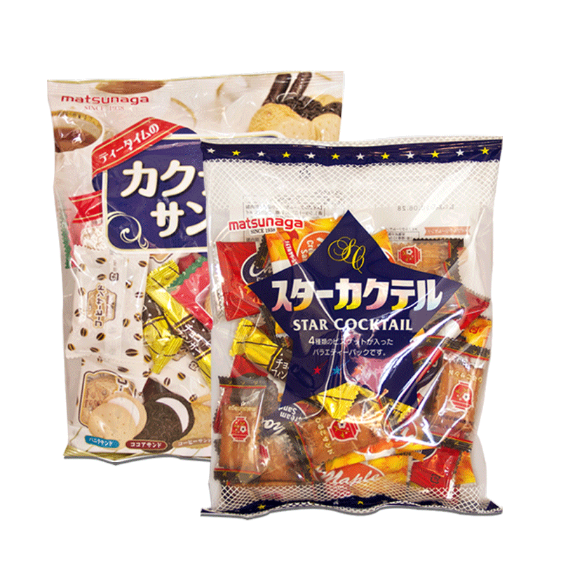 Matsunaga Assorted Sandwich Biscuits*1 Matsunaga Assorted Assorted Sandwich Biscuits*1 (2 bags) Assorted Sandwiches*1 Multi-flavored Sandwiches*1 (2 bags) Matsunaga Assorted Sandwiches*2 (2 bags)