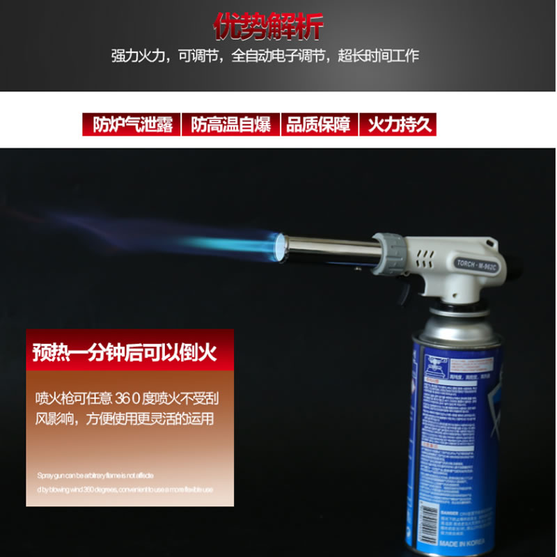 Bake Burning Carb Spray Gun Head Cake Fire Gun Burning Pig Hair Gas Gas Tank Portable High Temperature Spray Gun Small Welding Gun