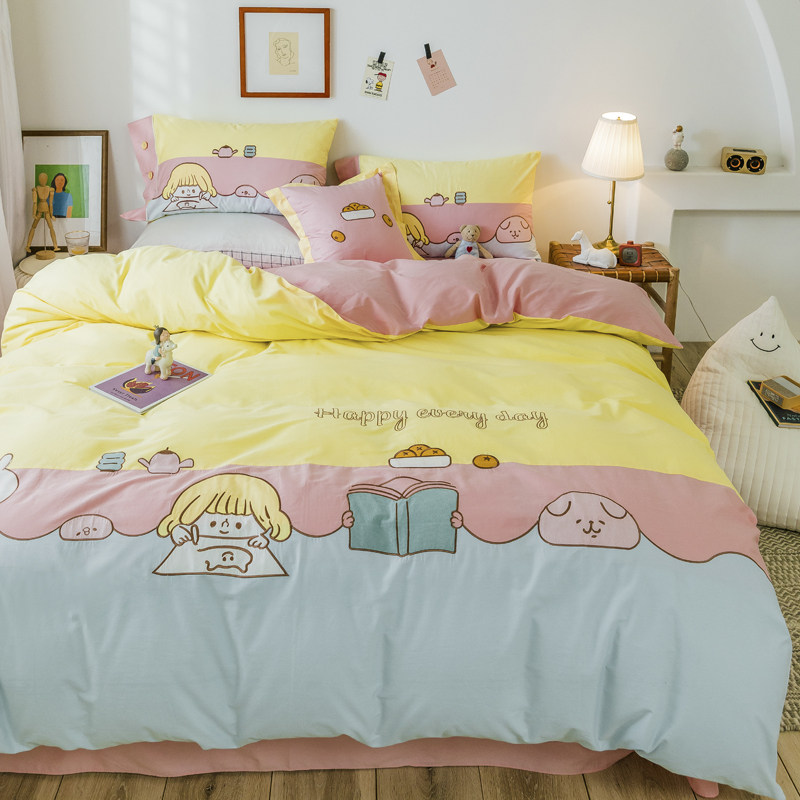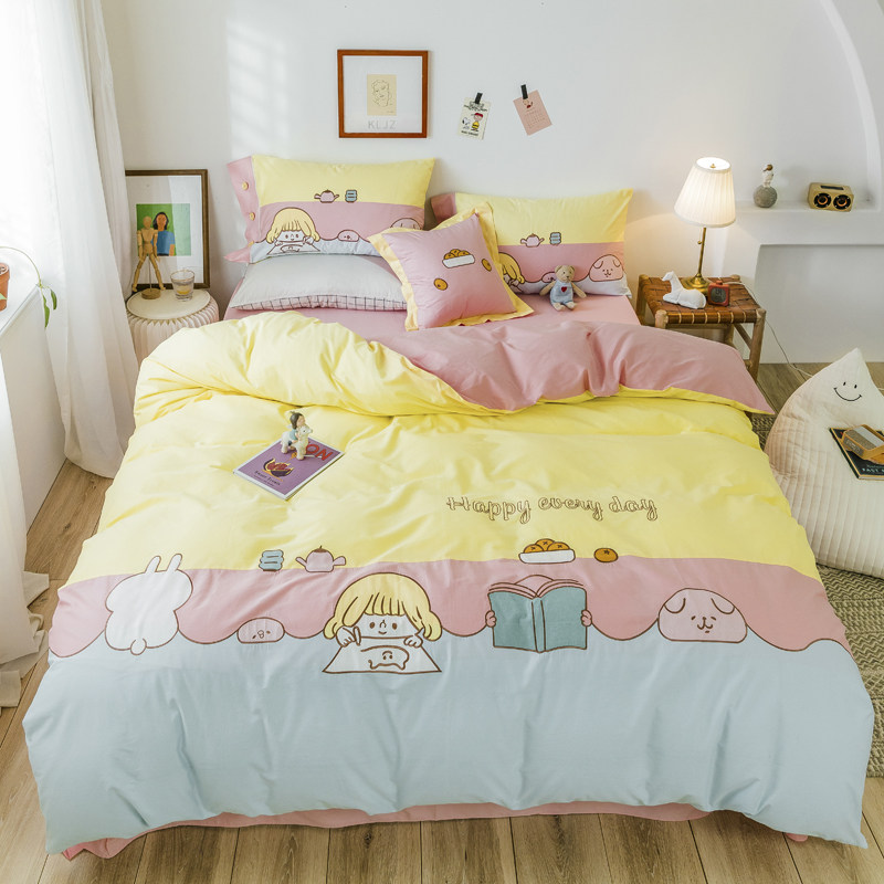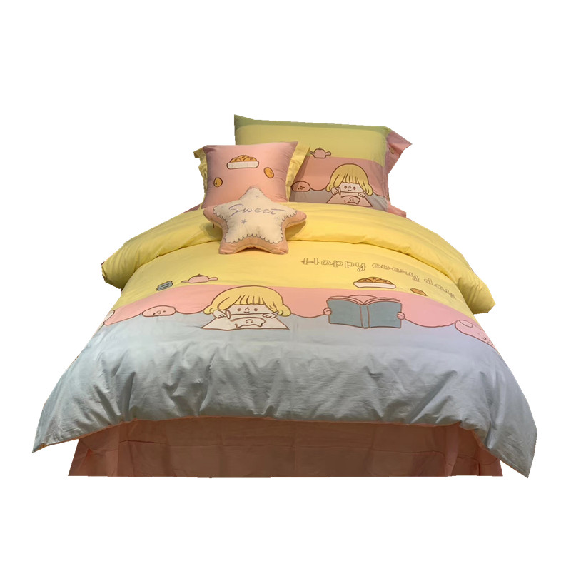 100% cotton children's four-piece set of cotton yellow girl princess style girl quilt cover sheet bedding 1 2 1 35