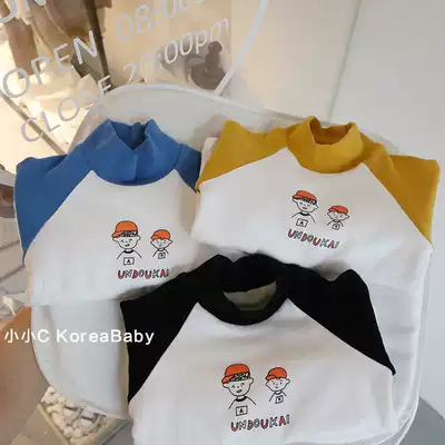 Cartoon raglan sleeves plus velvet bottoming shirt Korean baby clothes men and women children's baby cotton long-sleeved thick turtleneck