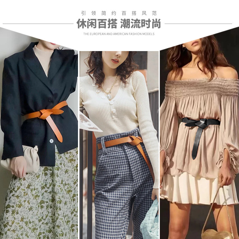 The first layer of cowhide wide belt Women's real leather knotted waist seal with skirt suit waist decoration sweater belt