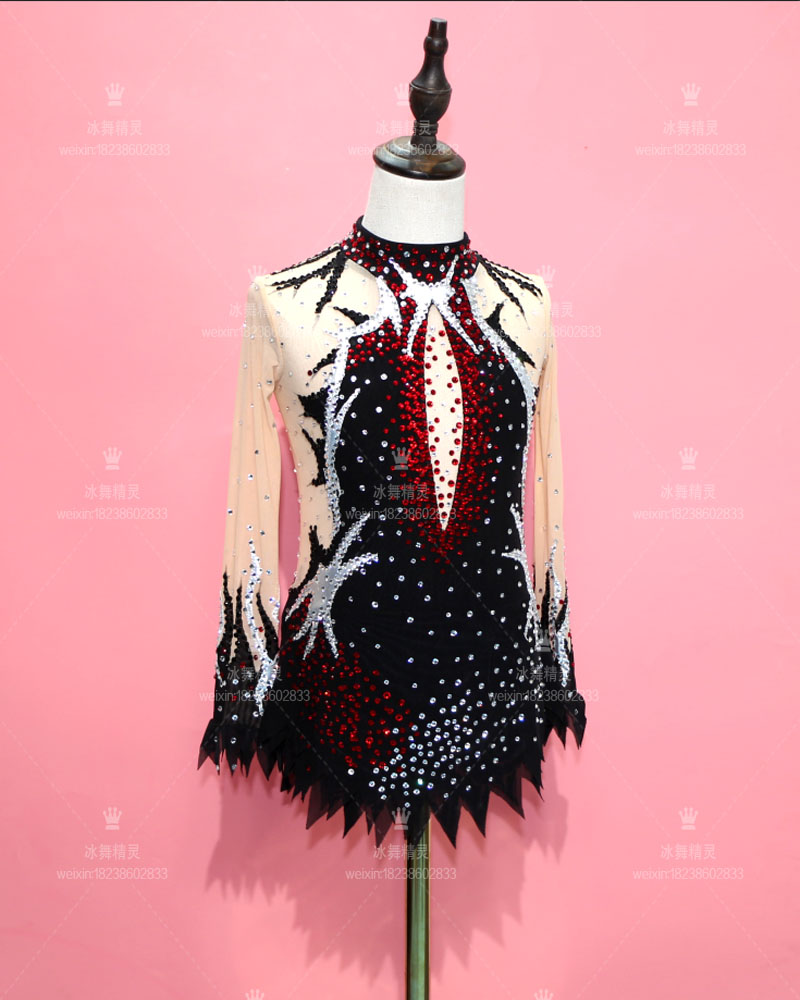 Ice dance genre children figure skating to serve as an adult performance suit skaters skating dress D317