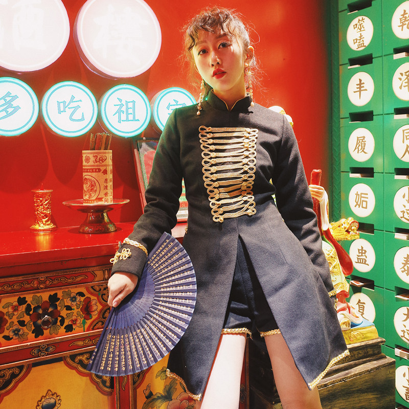 Yellow Pussy Classmates Original Homemade < Half City Smoke Sand > Warlord Wind Spring Autumn Long Sleeve Improved Qipao Shorts Suit