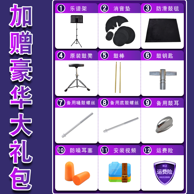 LEGENG drum set adult children self-study jazz drum 5 drums 3 cymbals 4 beginner practice professional live broadcast