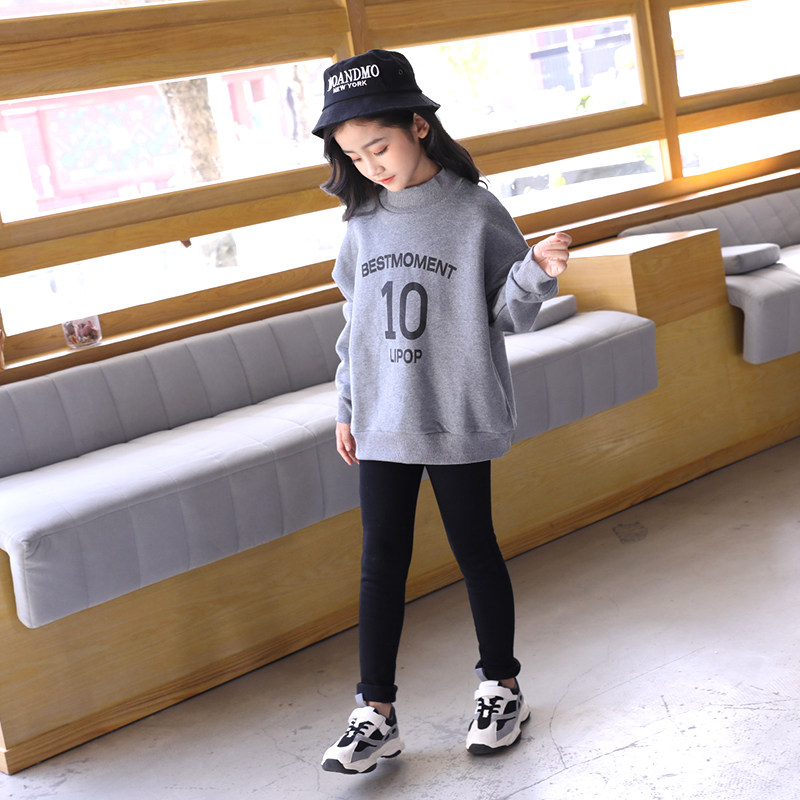 The girl's thick T - shirt in autumn and winter clothing of large children's casual thick - neck children printed tops tide