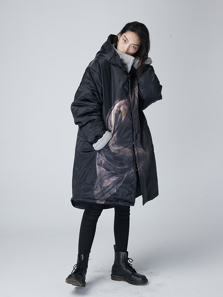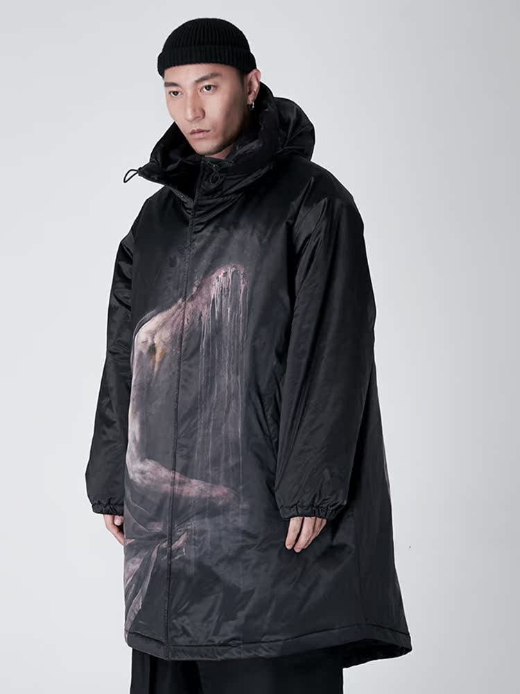 The Dirty Collection winter ultra-warm thickened Heavy-pound oil painting printed long version with cap laying cotton jacket