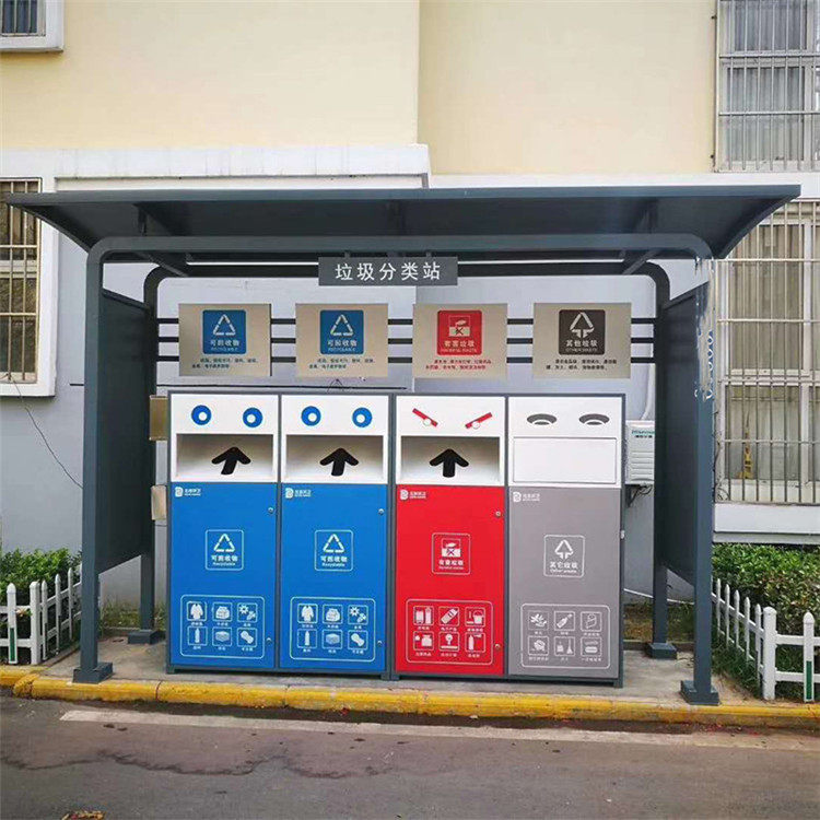 Custom Outdoor Community Stainless Steel Imitation Ancient Garbage Classification Recycling Kiosk Billboard Light Box Publicity Bar Recycling Kiosk