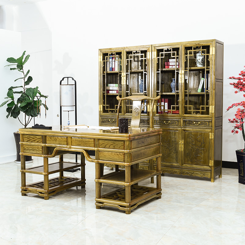 Gold Nanmu desk Antique desk Full solid wood boss office desk Chinese Mahogany bookcase combination