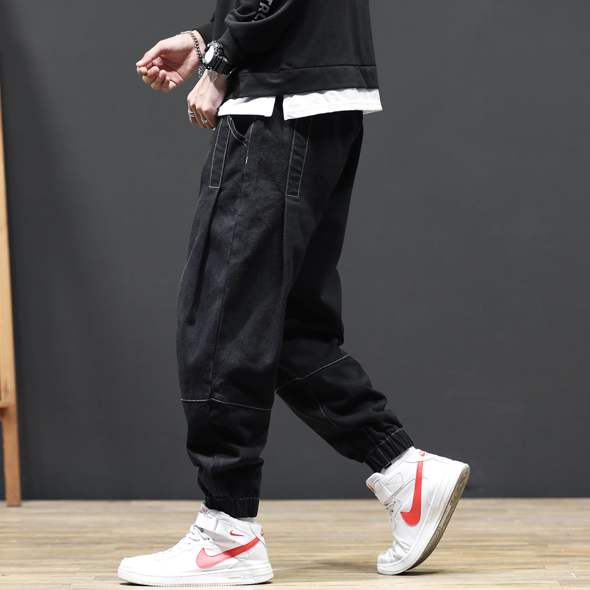 Overalls Men's Summer Loose Harlan Loose Fat Fat Guy Tide Brand Black Guangzhou Xintang Town Jeans Men