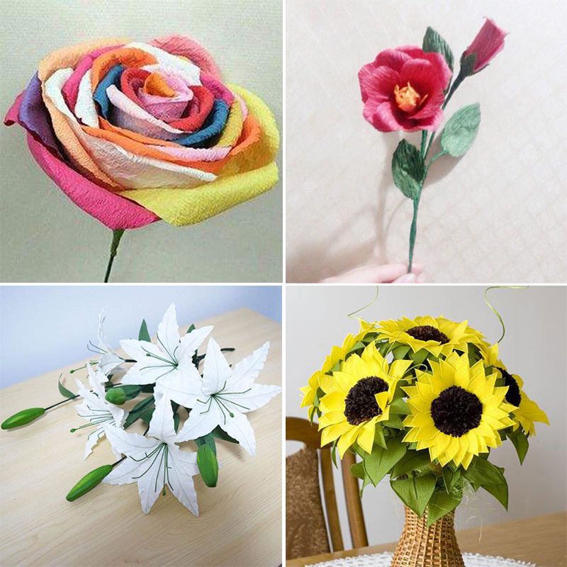 Color handmade crepe paper diy Telescopic crimping paper Rose art thickened pleated paper material package kindergarten