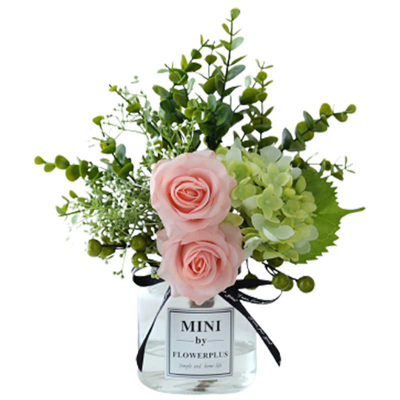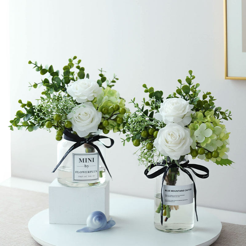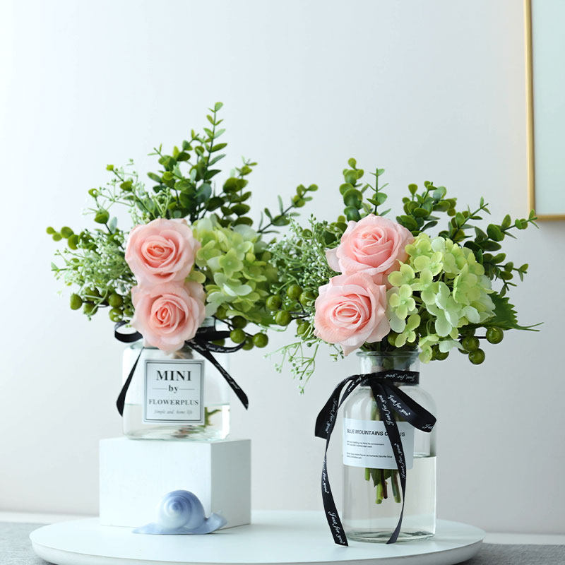 ins simulation high-grade flocking cloth rose transparent vase Nordic small fresh forest fake silk floral dining table living room