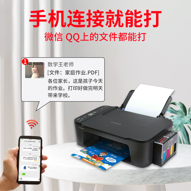 Canon ts3380 color inkjet printer student home small mobile phone wireless photo office copy scanning with ink silo multi-function machine a4 paper homework dormitory TS3480