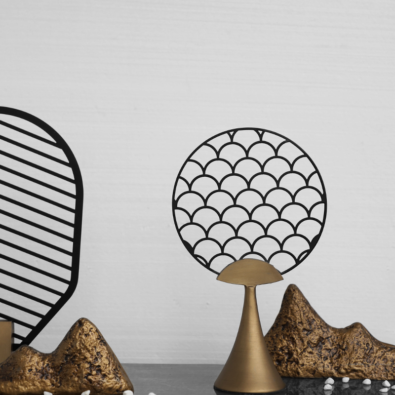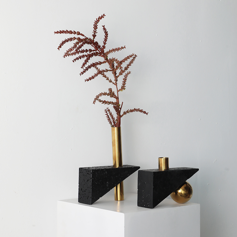 Metal slender U-shaped candlestick size set Arch Bridge Thinker crystal ball decoration high-end bronze candlestick six-piece set high style black triangle candlestick low style black triangle candlestick screen decoration A diamond screen decoration B twill screen decoration C