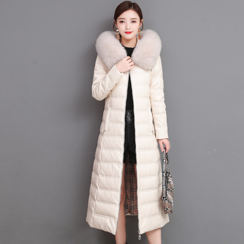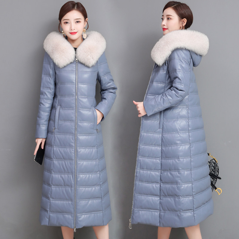 Feather feather feather feather female long repair thickening winter Haining knee coat female fox collar fur coat