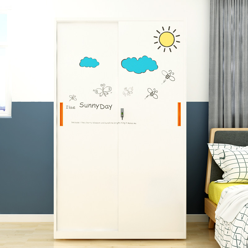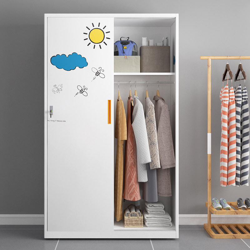 Ramen wardrobe Home steel Nordic mobile door containing cabinet bedding steel push-pull two-door cloak cabinet