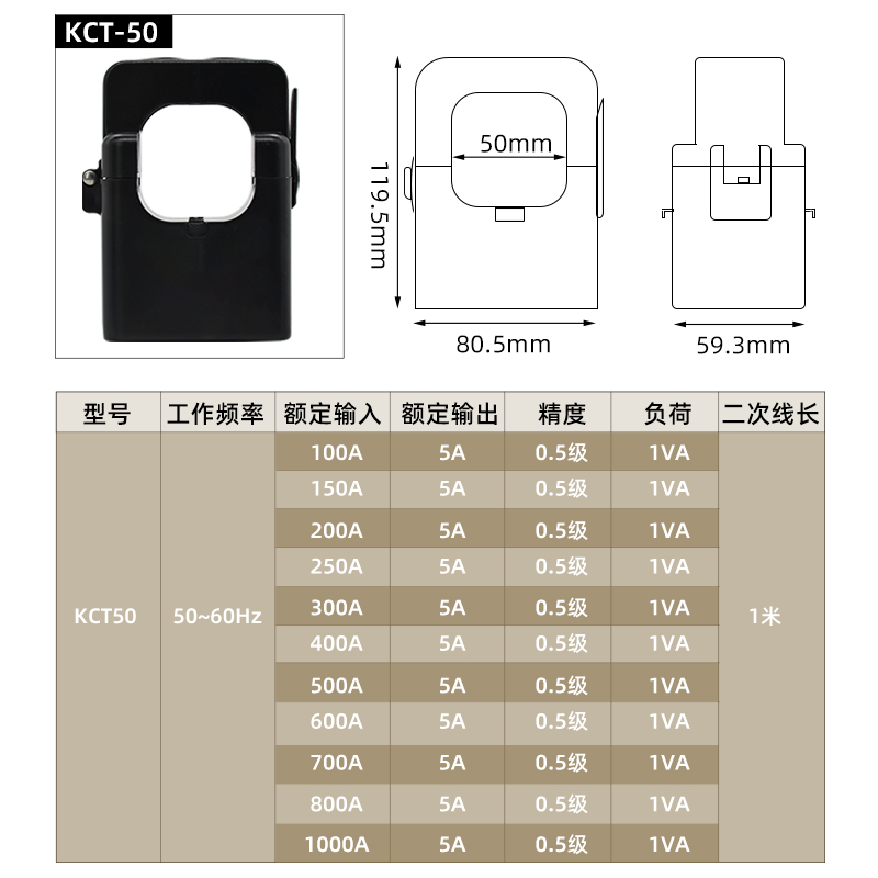 KCT-50 100 5A aperture 50mm KCT-50 150 5A aperture 50mm KCT-50 200 5A aperture 50