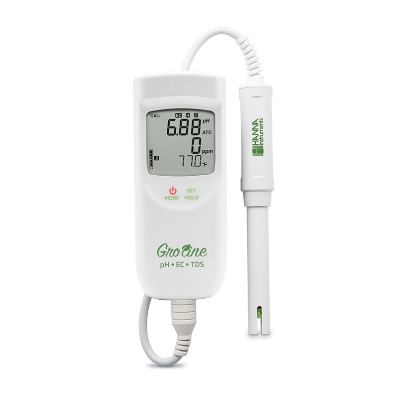 Hanna, Italy, Hana HI9814, medium range waterproof pH-EC-TDS measuring instrument quality assurance