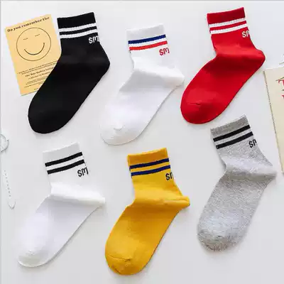 Langsha socks children's mid-tube socks thin summer cotton socks women's cotton sports socks Japanese college style ins tide summer
