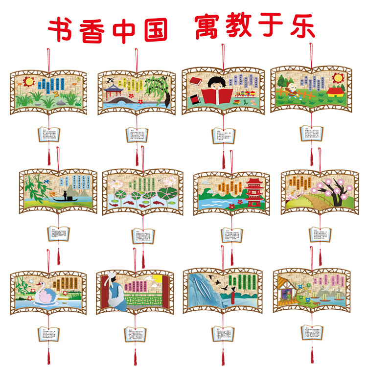 Unwoven creative DIY ancient poetry stickers hanging children hand-crafted teaching materials kindergarten decorative materials package