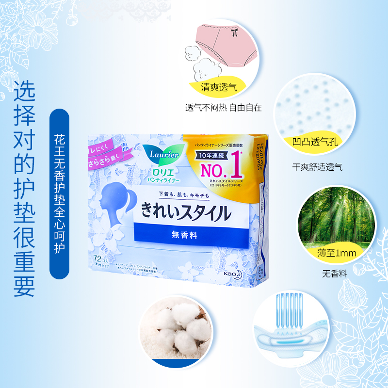 Japanese imported flowers Wang Leong and elegant sanitary pads cotton soft and pro-skin, no-fluorescent, no-scented 14cm72 sheet