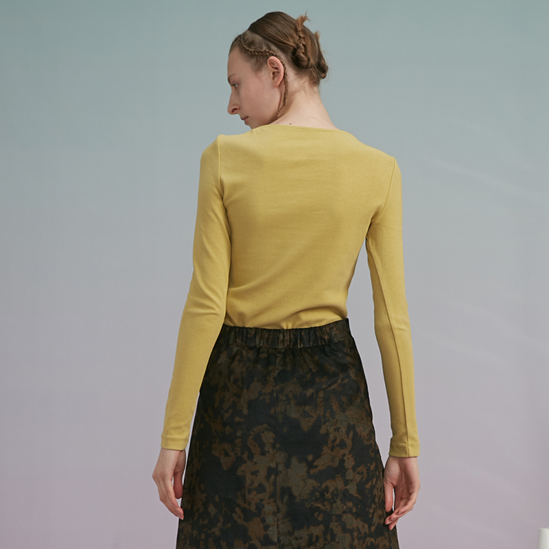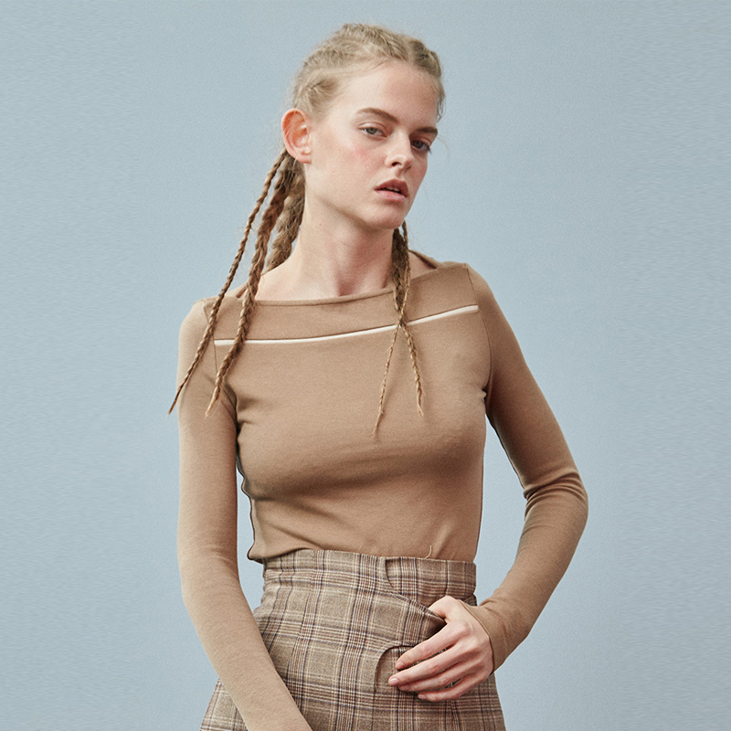 DIDDI MODA Original design 2021 new hit undershirt woman autumn fitted with a straight shoulder long sleeves T-shirt