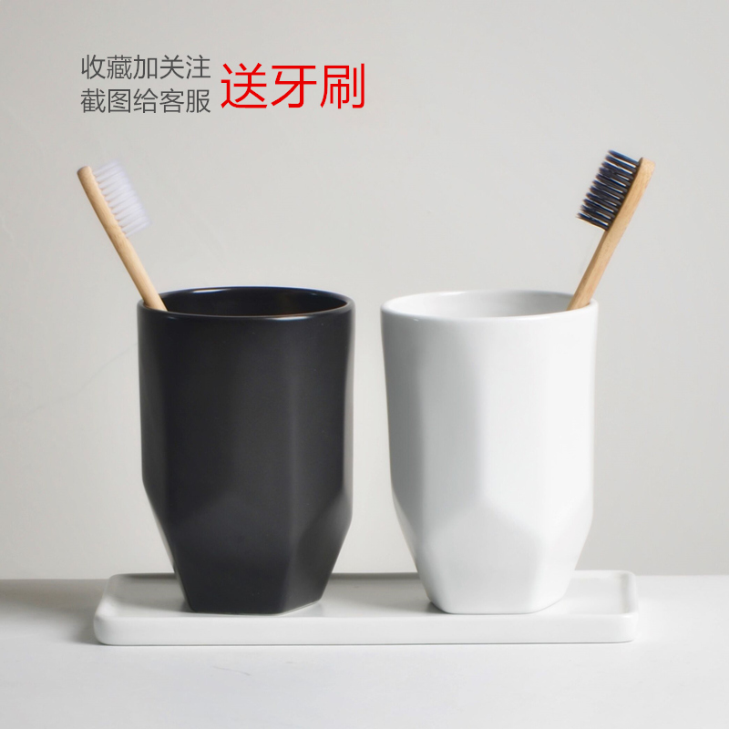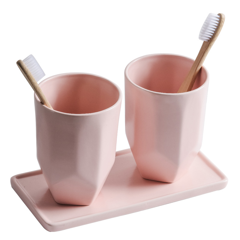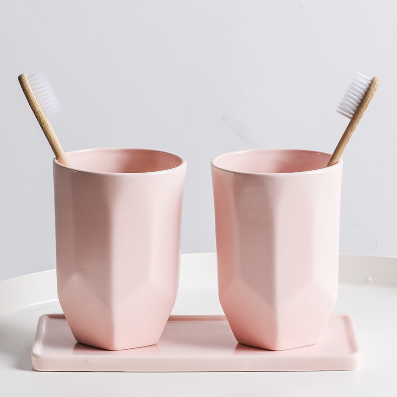 Nordic Ins Style Geometric Pink Teenage Girl Hearts Ceramic Lovers Wash Cup Gargling Cup Brushing Cup Trays Suit-Taobao