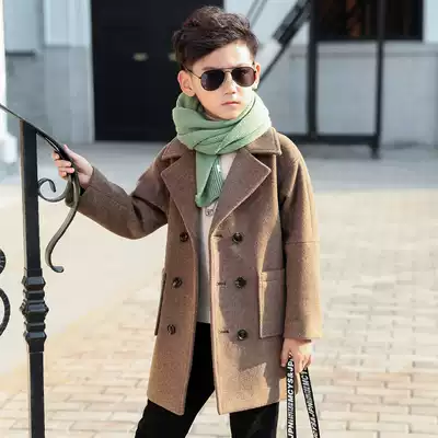 Boys woolen coat suit collar 2021 autumn and winter plus cotton thickened double-breasted children's medium and long version of woolen coat