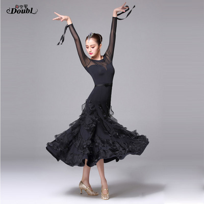 Dambao Roo New Long Sleeve Foreign Dress Grand Hem Dress Competition Dress Rehearsal For Social Dance National Standard Dance Dress Morden Dance Dress
