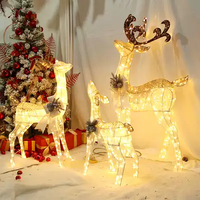 Christmas decorations, golden deer pull carts, Elk ornaments, Christmas tree scenes, shopping malls, hotel windows, glowing