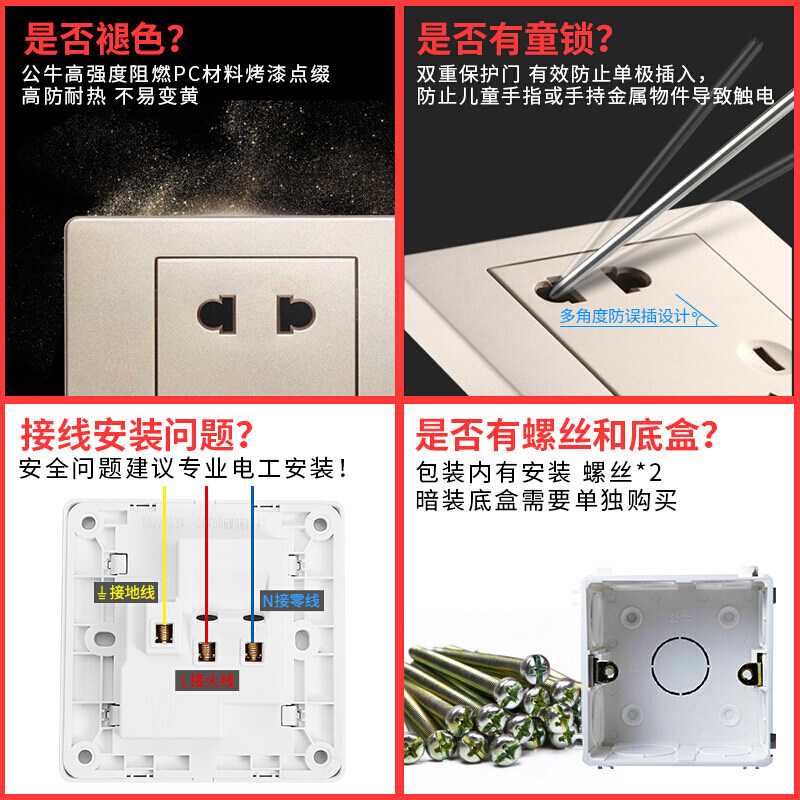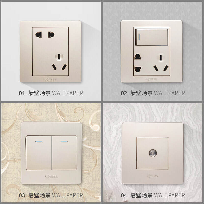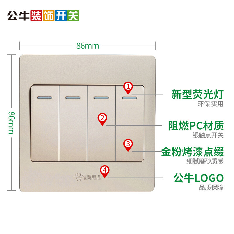 Bull G07 Switch Socket 4 Four Open Double Cut Four Home Electric Light Wall Panel Champagne Golden Wane Button