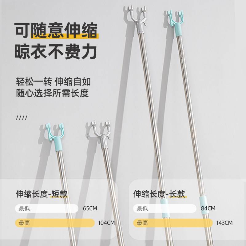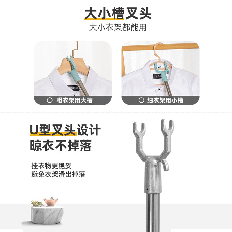 Support rod Clothes fork rod Household telescopic clothes drying rod stick Stainless steel drying clothes fork extended pick hanger rod Ah fork