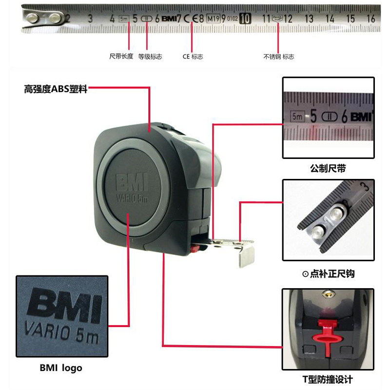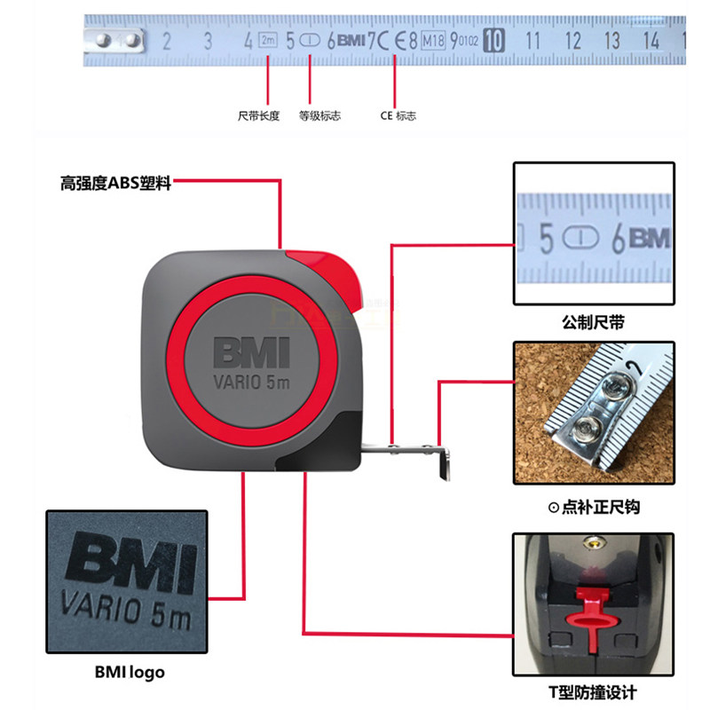 German measuring tape BMI mandatory 411 stainless steel ruler with first-class precision 2 m 3 m 5 m 8 m 8 m measuring ruler