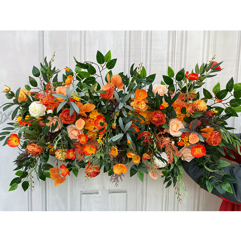 Autumn orange red wedding decoration decoration flower row props flower door arch row flower road lead catwalk simulation silk flower wedding