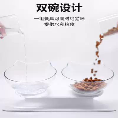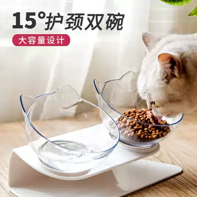 Cat bowl Dog bowl Oblique mouth double bowl to protect the cervical spine Cat food bowl Cat food bowl Pet dog bowl Drinking water cat bowl Cat supplies