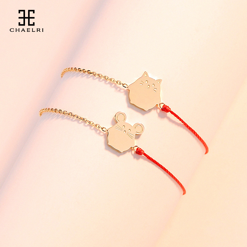 Lambil Tiger Year Kitten Kitten Red Rope Bracelet Female Plated Rose Metal Tiger Pig Bracelet Thin Little Tiger Bracelet
