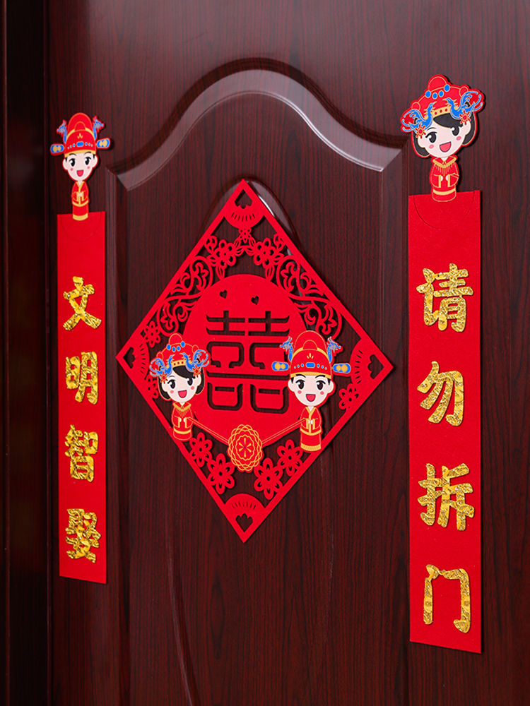 Wedding double happiness word door stickers wedding supplies Daquan wedding new house layout couplet wedding room decoration pull flower props