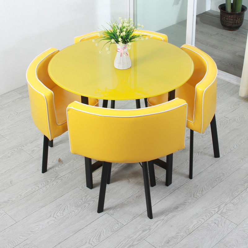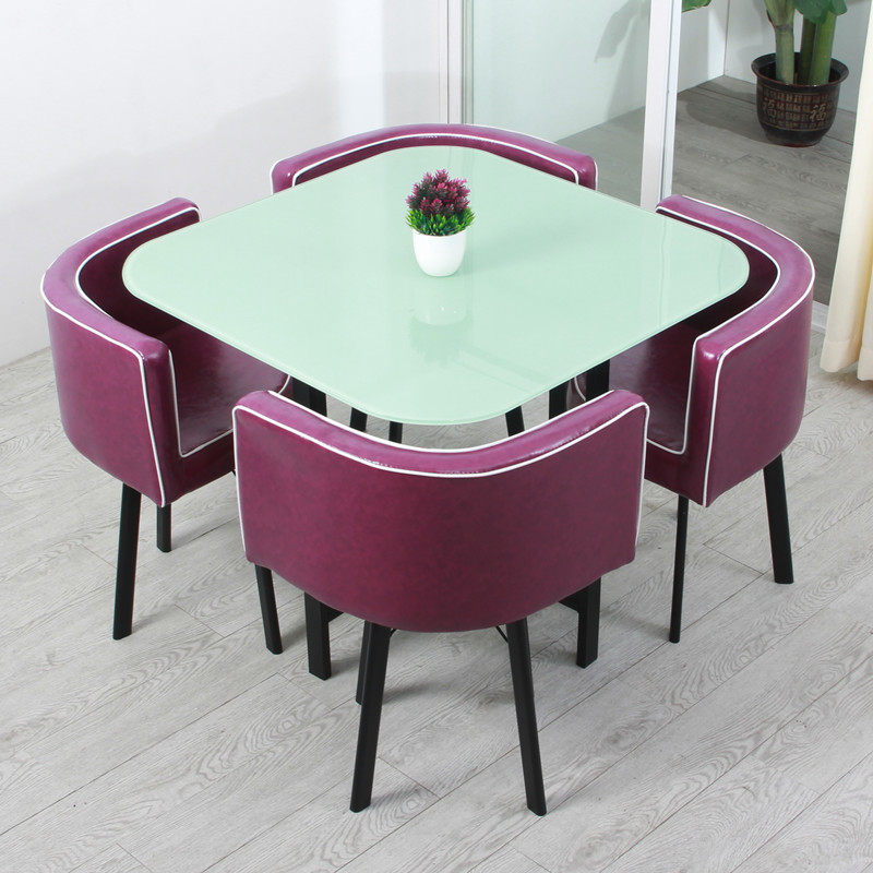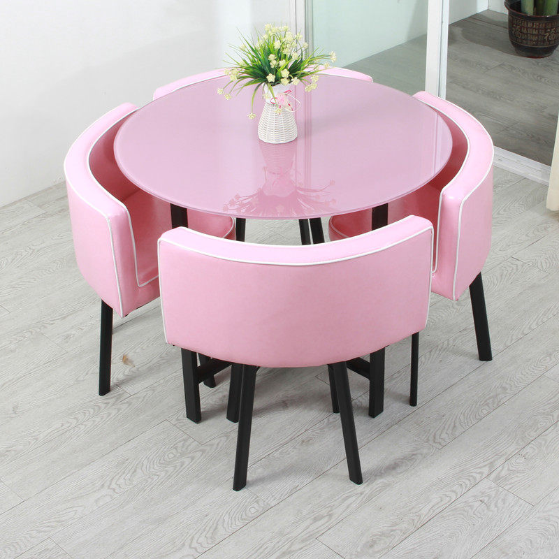 Pick up missed glass round guests reception desk and chairs in talks table and chairs combined simple milk tea door shop small round table