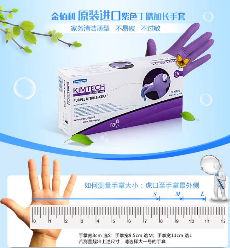 12 inch gold thyme G20 purple Ding clear test lengthened glove food grade dishwashing 50601 5060203