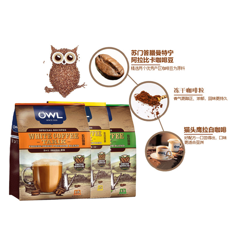 Malaysian Cat Owl Latte White Coffee Tedense freeze-dried three-in-one instant original taste hazelnut without sugar refreshing
