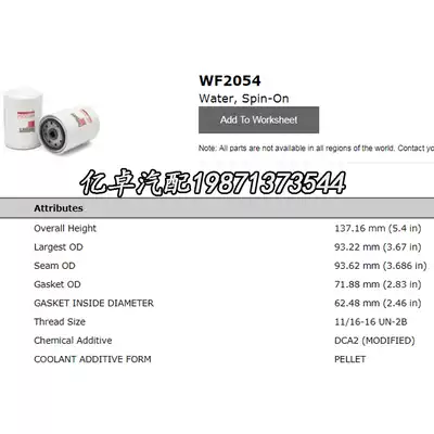 WF2054 3100305 3318318 3315788 WF2053 3315115 XQ14 Cooling water filter element