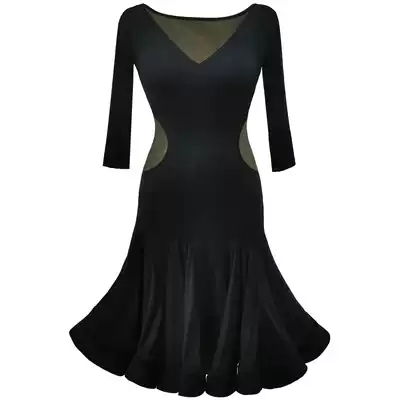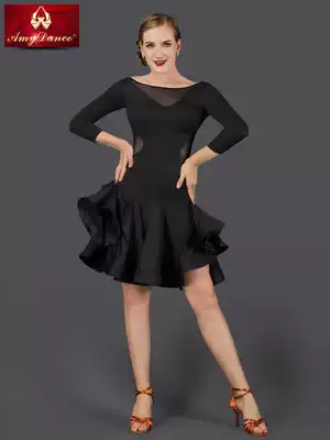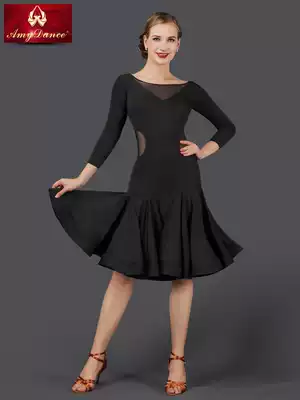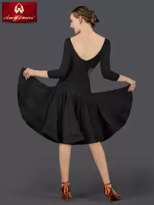 Amy dance dress Latin dance dress dress Sexy open holding baby bag chest pad large skirt Rumba dance costume female practice suit