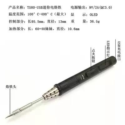 usb electric soldering iron portable small internal heating type electric welding pen can adjust the temperature for household students welding maintenance TS80