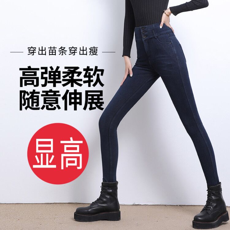 Black plus suede jeans female autumn winter thickened ultra high waist small leggings slim fit and warm collecting elastic skin-tight boot pants-Taobao
