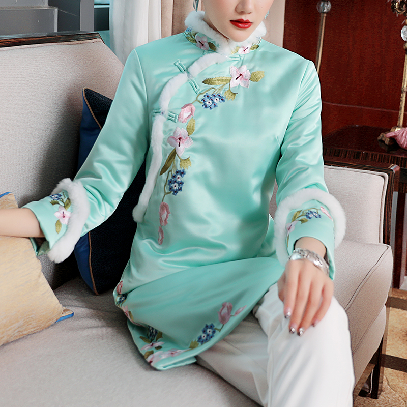 Chinese Cotton Padded Jacket Woman Autumn Winter China Wind Women's Clothing Embroidery Pan Button Tea Suit National Wind Jacket Improved Hanfu Winter Clothing