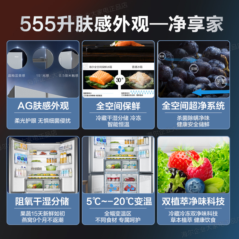 Haier Fridge Cross Pair Open Door Multi-door Four Doors Air-cooled Frost-free Full Space Refreshing Double Frequency Conversion Triple system 555L