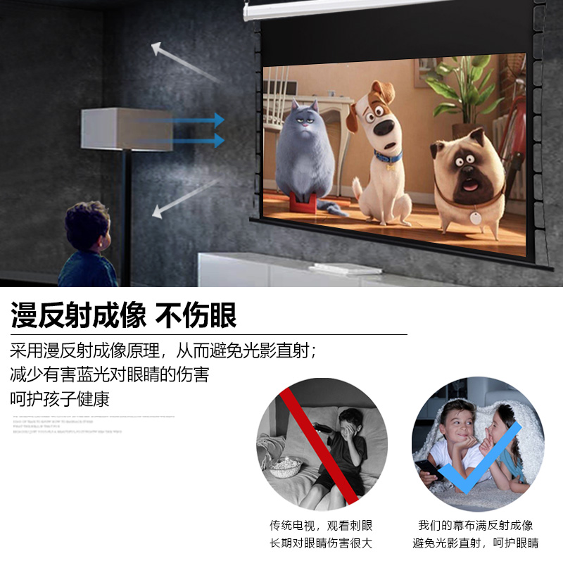 Electric remote control pull screen ultra-short focus electric anti-light screen automatic lifting suspended ceiling wall hanging 150 inch 120 inch 100 inch 92 inch 84 inch 72 inch telephoto cinema home projector screen