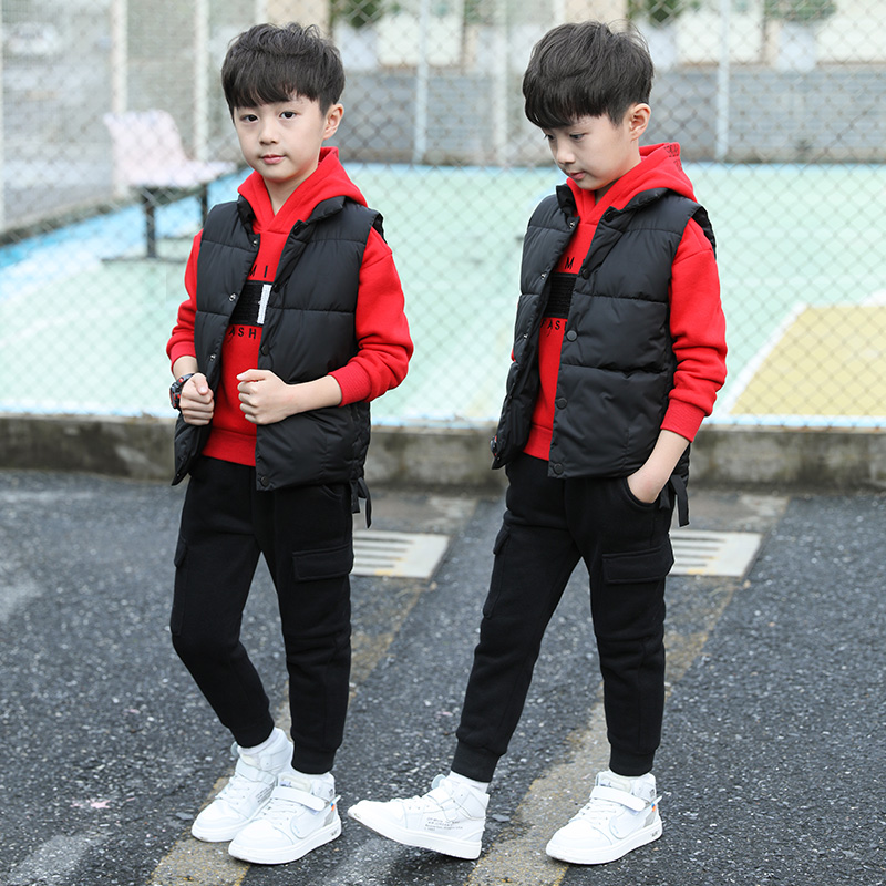 Children's clothing boys suits autumn and winter clothing 2022 new western style boys in the big children plus velvet thickening three-piece tide
