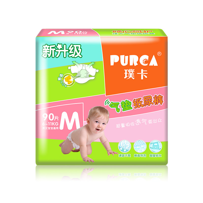 Puka air cushion baby diapers M size 90 pieces comfortable dry breathable diapers cute and amiable